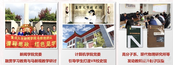 各院系深化课程思政建设,及时将党史学习教育成果转化为教学内容,新闻学院党委把学习教育与马克思主义新闻观教学研讨融为一体,计算机学院党委引导学生运用专业知识打造VR校史馆,高分子系、现代物理研究所等单位党组织发动教师更新教学内容、建强教学团队、提升育人实效。