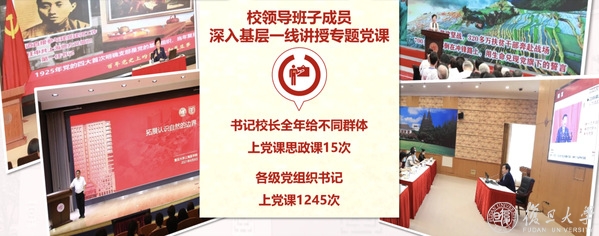 从毕业生到新生,从党支部书记到新进教职工,从基础教育教师到机关党员干部……这一年,书记、校长15次走上党课、思政课的讲台,更带动校领导班子成员深入基层一线、走进师生讲授专题党课,推动各级党组织书记上党课1245次。