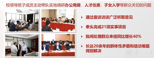 学以致用、以学促行,开展党史学习教育,落脚点在一个“行”字。复旦大学党委从最突出的问题抓起、从最现实的利益出发,着力当前、着眼长远,以解决实际问题为核心,以师生“急难愁盼”为准绳,以服务社会需求为牵引,推动“我为群众办实事”实践活动形成长效机制。