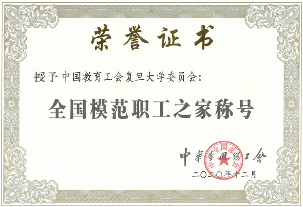 近日,复旦大学工会被中华全国总工会授予“全国模范职工之家”称号。