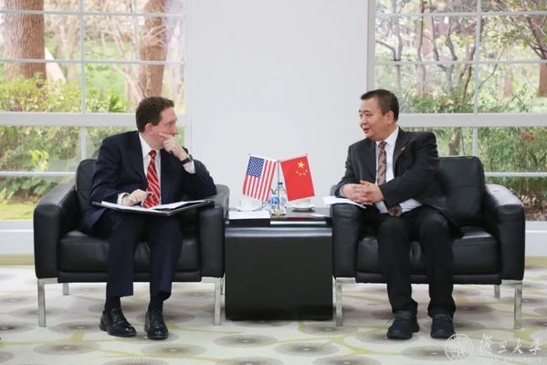 金力对总领事一行的来访表示欢迎。他回顾了复旦大学与美国高校的历史渊源和合作情况,特别提到复旦与哈佛、耶鲁等美国顶尖高校之间活跃的学生交流、教师互访和科研合作,强调中美高校合作及两国青年交流的重要性,并表示复旦大学将继续深化和拓展与美国高校的合作与交流,拓展合作空间,提升联合研究、联合培养人才的水平,努力为增进两国人民的相互了解作出积极贡献。