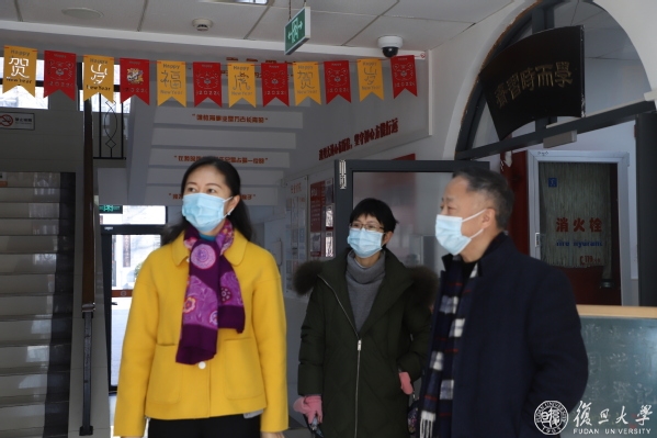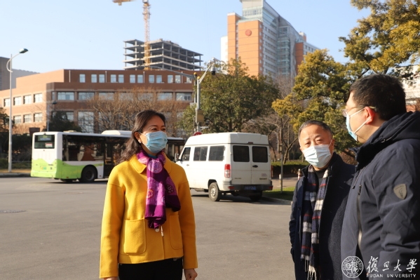 校党委副书记尹冬梅,党委副书记、纪委书记金海燕走访检查了疫情防控和学生生活园区运行保障等情况,了解入校车流人流管理、保安变动、疫苗接种、校门开放、道路秩序管理事宜,强调进校报备必须配合门岗,进行严格二次检查,继续推广“平安复旦”打卡制度。