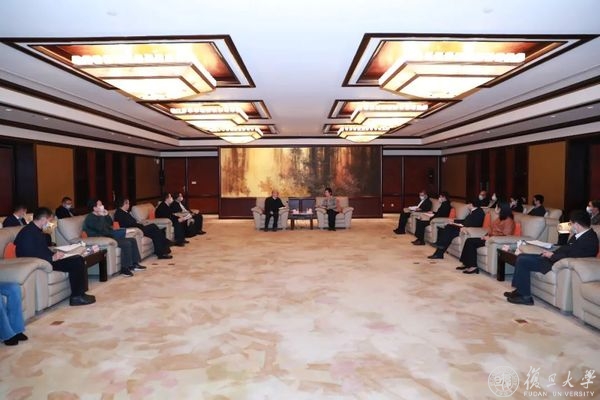 3月3日下午,湖南省委副书记、省委教育工委书记朱国贤率团访问复旦大学,与校党委书记焦扬,校长、复旦大学上海医学院院长金力等校领导进行座谈,上海市委副秘书长燕爽、上海市教卫工作党委书记沈炜参加座谈会。