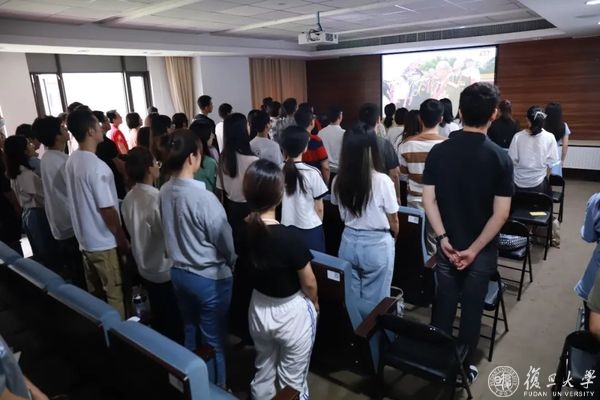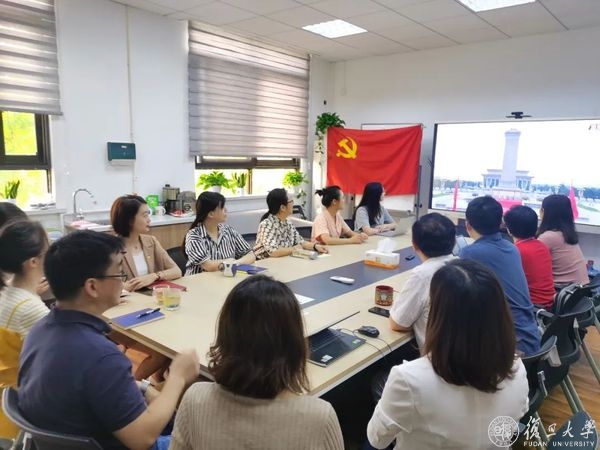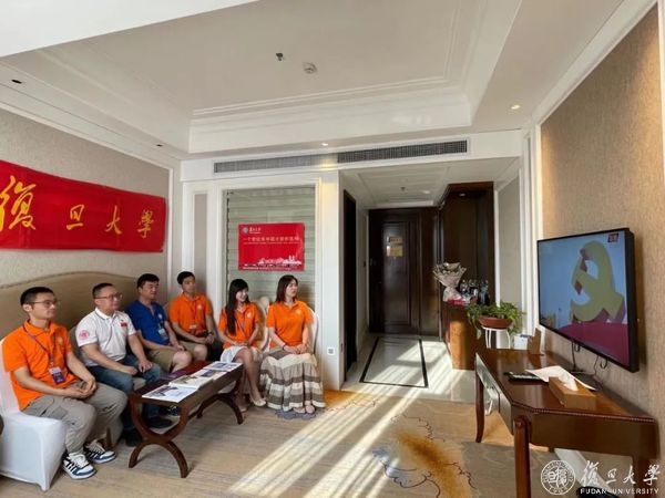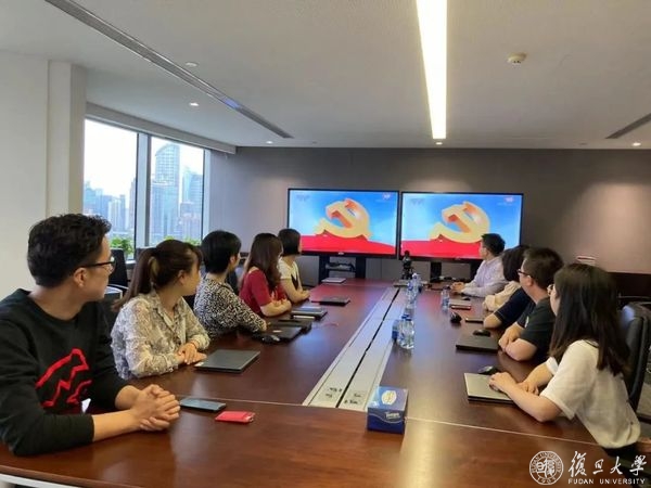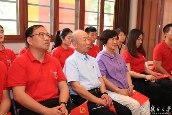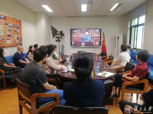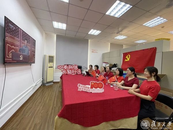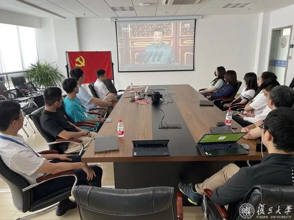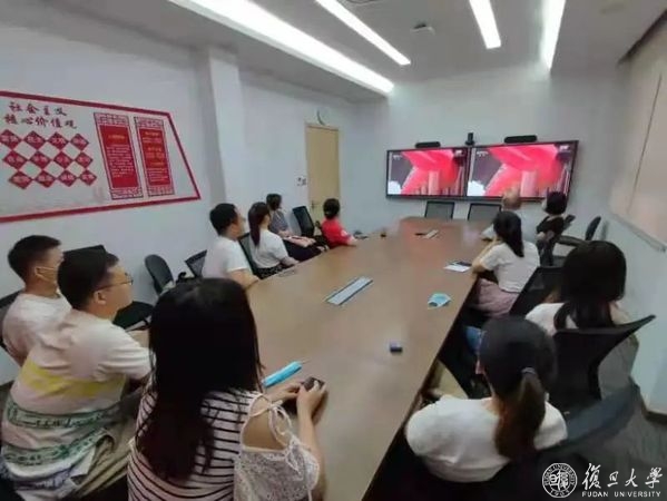 在《共产党宣言》展示馆,陈望道老校长家属、前不久刚刚加入中国共产党的陈振新夫妇同“星火”党员志愿服务队队员们共同收看,共话信仰;在新时代上海高校党建创新实践基地,外国语言文学学院学生党支部的党员们探讨青年使命担当;在智库楼,老中青智库专家们更加坚定了为党和国家建言献策的方向;在微电子学院机电系统实验室,青年科技工作者们更加明确了科研报国的目标;奔赴全国各地的招生组在驻地收看,期待将红色基因植入未来复旦人的心中;不少在海外的复旦人也通过网络收看,共同为党庆生。
