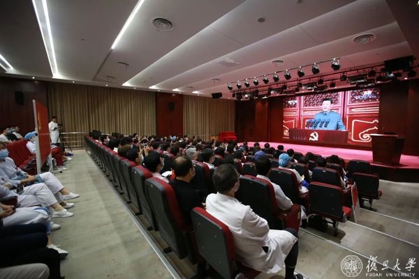 总书记在重要讲话中指出,我们要用历史映照现实、远观未来,从中国共产党的百年奋斗中看清楚过去我们为什么能够成功、弄明白未来我们怎样才能继续成功,从而在新的伟大征程上更加坚定、更加自觉地坚守初心使命、开创美好未来。站在“两个一百年”奋斗目标的历史交汇期,复旦大学将以习近平新时代中国特色社会主义思想为指导,牢牢把握社会主义办学方向,推动“双一流”建设提质增速,努力实现一流育人质量、一流学术成果、一流社会服务、一流师资队伍、一流基础设施,培养好以民族复兴为己任的时代新人;在重大基础研究领域和关键技术攻坚方面形成新突破,抢抓机遇、奋勇向前;弘扬伟大建党精神,充分激发全校党员和师生干部爱党报国、砥砺奋进的磅礴伟力,为全面开启迈向中国特色世界顶尖大学新征程、实现中华民族伟大复兴中国梦作出新的更大贡献!