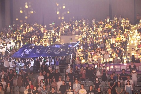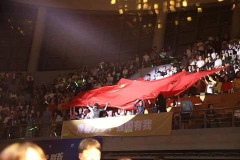 晚会最后,国旗和校旗在全场传递。复旦精神,今生永相伴!