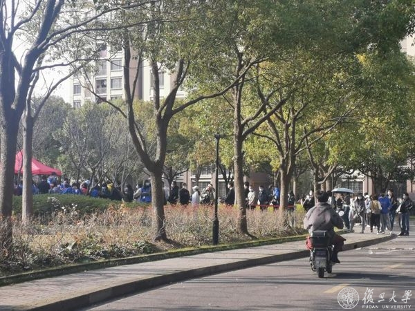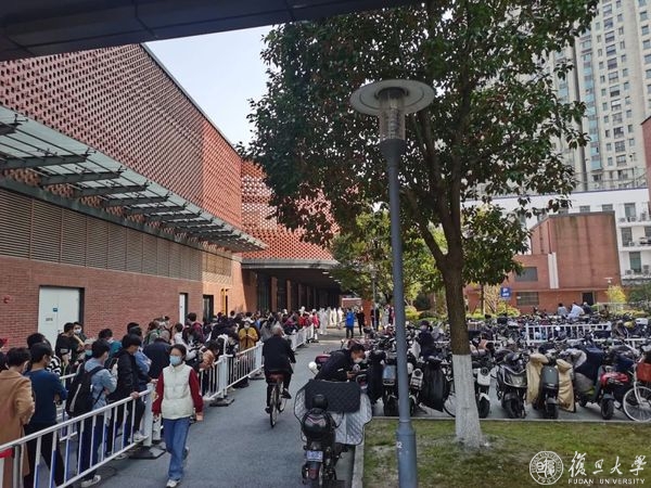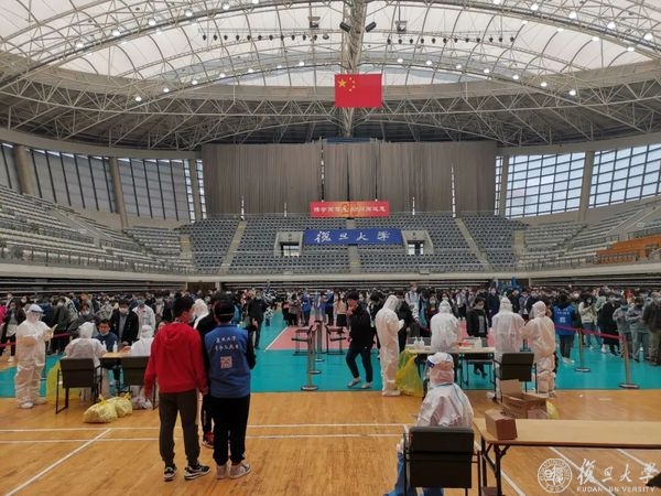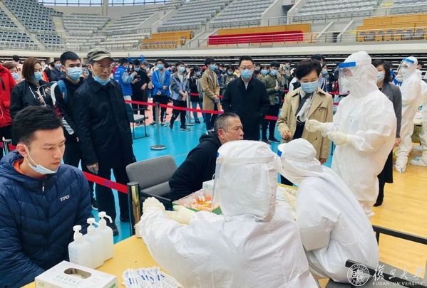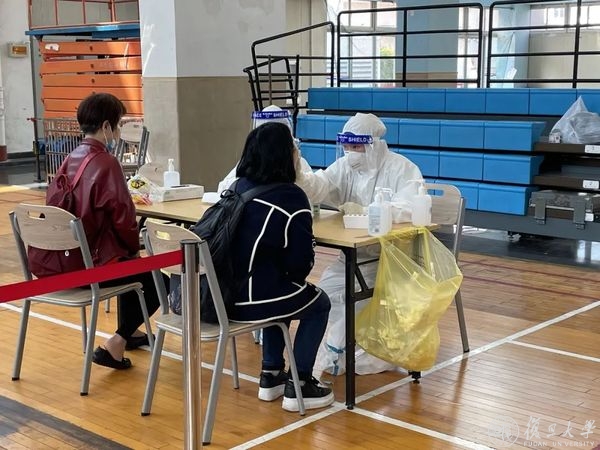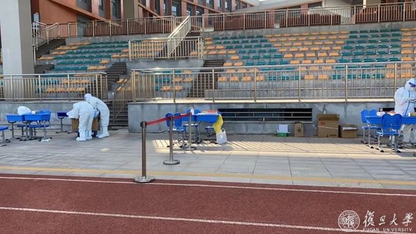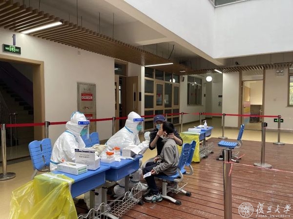 在上午邯郸校区5个点完成核酸检测后,下午张江校区、江湾校区、枫林校区现在正在检测中。