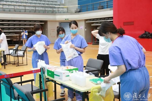 7点30分,来自复旦大学附属中山医院、附属华山医院、附属眼耳鼻喉科医院、附属儿科医院、附属肿瘤医院、附属妇产科医院以及附属华东医院的医护人员就开始了紧锣密鼓的准备工作。