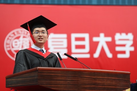 毕业生代表、复旦大学材料科学系2019届博士毕业生胥博瑞在发言中分享了自己的经历。2017年底他得知自己患上滤泡性淋巴瘤,但他以乐观心态面对疾病,坚持科研,最后发表十四篇SCI论文(五篇第一作者)按期毕业。经历了这样一次意外和磨练,让他更加明确了未来人生的方向,继续从事科学研究,探索材料的世界,并且在以后的生活中,以科学而自信态度去面对未知的挫折和挑战,过积极的人生。他与在场毕业生共勉,“人生的轨迹可以改变,前进的速度可以调节,只要认清目标、瞄准方向、不惧挫折、把握人生,终有一日能实现人生的理想。”