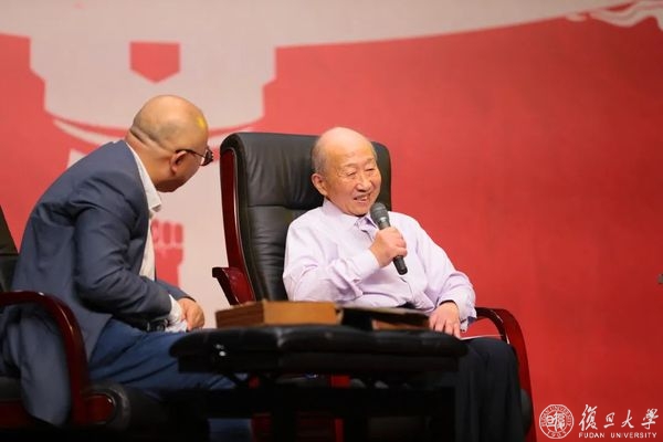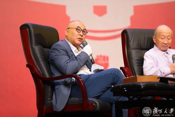 对谈最后,张力奋引用当年登辉堂开幕典礼上李登辉校长对复旦学生的一段话:“你们现在穿的是学士服,你们穿过了以后应当是一个有学问的人,应当从此对国家有所贡献,一个大学毕业生应当对社会服务,为人类牺牲,服务、牺牲、团结是复旦的责任。”