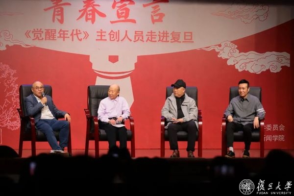 陈望道之子、复旦大学电子工程系退休教师陈振新教授,复旦大学新闻学院教授张力奋,《觉醒年代》导演张永新,剧中陈独秀饰演者于和伟,在现场就《觉醒年代》拍摄过程及创作体会展开交流。