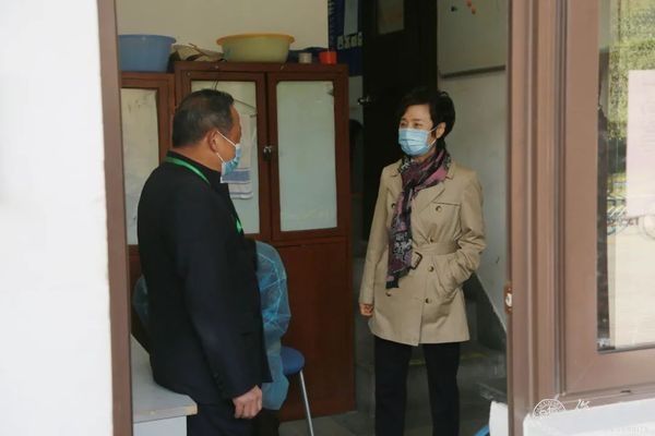 焦扬首先来到邯郸路正门,了解校门管理运行情况及相关数据,听取相关部门负责人对校门管理情况和安保人员的轮班、每日核酸检测情况的汇报。
