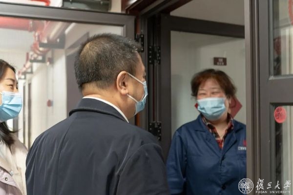 3月23日、24日,复旦大学校长金力走访江湾校区的二级院系、实体运行科研机构、学生生活园区、食堂等,现场督查疫情防控下校园运行和实验室安全管理工作,指导核酸检测工作,了解关心学生学习生活。