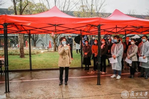 3月25日下午,复旦大学江湾校区举行准封闭管理期间新冠肺炎疫情防控应急处置演练。复旦大学校长金力观摩了演练视频,相关职能部门、二级院系参加演练。
