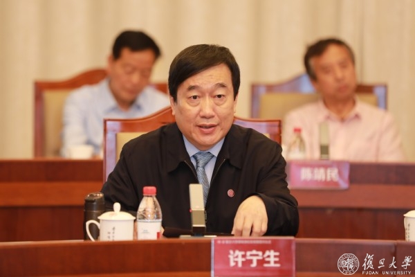 许宁生代表复旦大学和校友会,向心系母校、胸有大爱、慷慨支持母校教育事业发展的谭瑞清校友及家人致以崇高敬意和诚挚感谢。