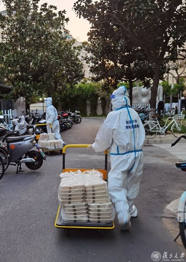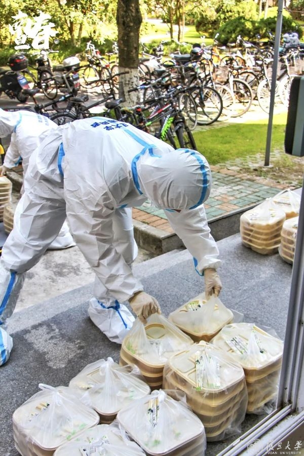 4月3日凌晨1时,校团委紧急响应,从南区学生宿舍564名疫情防控储备志愿者中,招募了首批32名餐饮保障志愿者,以楼为单位配送至每个师生手中。自上午6时至8时30分,完成区域内5000多份早餐的配送任务,同时,全天共派出志愿者108人次,配送三餐和抗原检测试剂盒超过23000份。