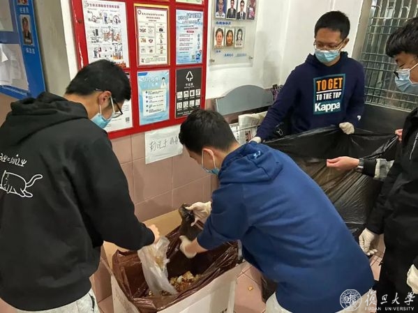 4月2日晚,他们迅速集结、立即响应、投入工作,按照寝室长-楼层长-楼宇负责人运行机制,近500人承担着学生寝室送餐发放、楼宇值守、公共卫生空间清洁等工作。