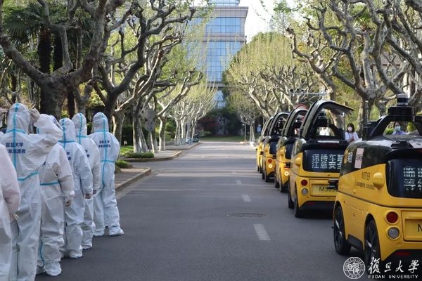 4月9日,由美团捐赠的10辆自动配送车正式进入复旦大学。10日,焦扬一行现场查看了自动配送车运行和使用情况,并和送餐志愿者交流,询问他们工作情况,了解志愿者送餐服务,对他们进行勉励鼓励。