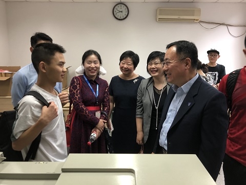当天,复旦大学领导及相关部门负责人来到报到现场和新生宿舍看望新生和家长,并亲切慰问了服务在迎新一线的工作人员。