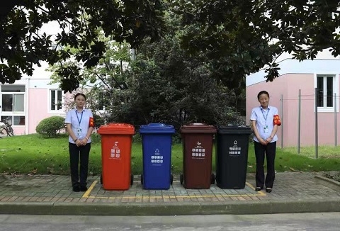 在推进智慧校园建设的同时,学校抓住开学契机,向2019级新生普及上海垃圾分类知识,引领践行环保理念、共建绿色校园的“新风尚”。每个新生宿舍内配置有干湿分类垃圾筒,并张贴垃圾分类告知书。各个学生生活园区内均设有固定的生活垃圾分类投放点,并专门制作了四类垃圾投放点分布地图,发放给新生。此外,学校还在人流高峰期安排物业人员担任垃圾分类督导员,指导学生进行分类投放。报到当天,每位新生都可在报到点向辅导员领取一份由学校总务处制作的“卿云森林”环保包,内含校园节能小贴士,帮助大家养成循环利用、绿色低碳的生活习惯,为建设绿色校园、保护地球生态贡献一己之力。