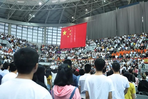 9月6日上午,复旦大学正大体育馆内师生满座,洋溢着青春朝气。