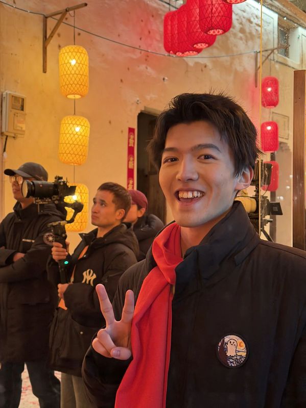 这种“热”,来自于镜头前后的专业协作。来自新闻学院2025级望道新闻卓越班的鲁一,用“新传人”的视角观察着现场:彩排前统筹与服装老师量体裁衣修改服装,导演团队耐心教导表演,摄像团队一遍遍的奔跑,只为捕捉最好的动线......最让鲁一感动的现场细节,是一位导演趁休息间隙从兜里撕下自己的暖宝宝,塞进了学生冰凉的手心里。