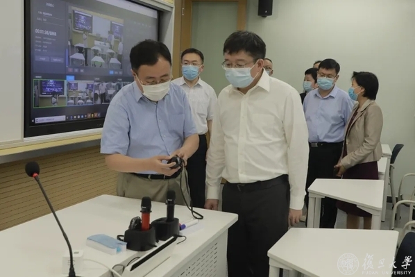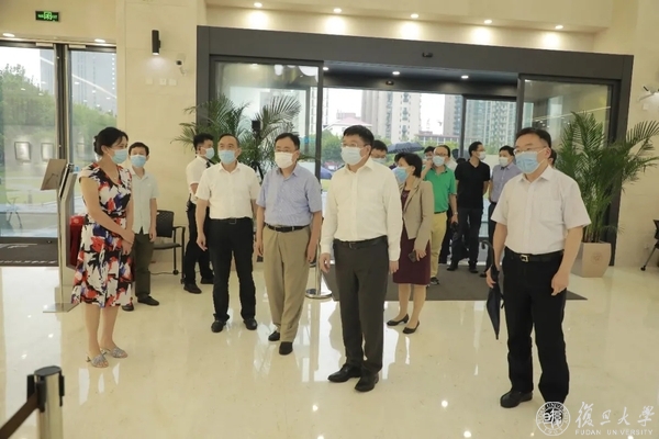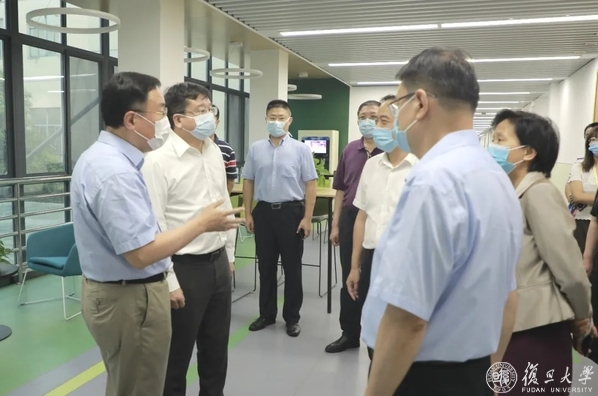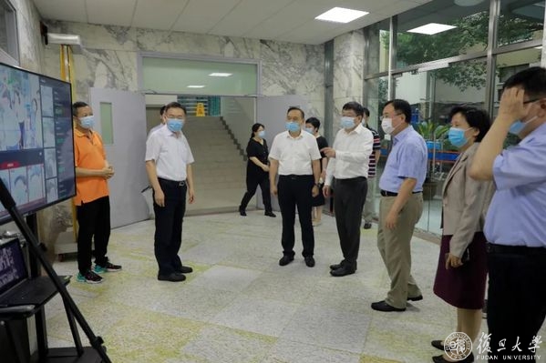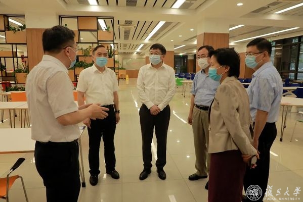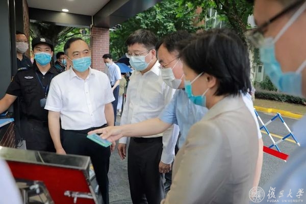 8月28日下午,上海市副市长陈群、市政府副秘书长虞丽娟、市教委主任王平来到复旦大学上海医学院,检查疫情防控和学生开学返校准备工作。复旦大学党委副书记、上海医学院党委书记袁正宏,复旦大学常务副校长、上海医学院院长桂永浩,以及徐军、汪志明等医学院领导陪同调研。