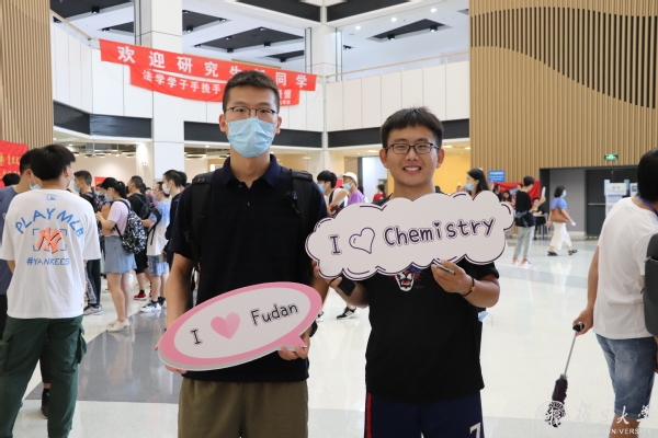 今年江湾校区理工科报到人数继续上升,迎来了计算机、软件学院和代谢与整合生物研究院三个新学院,也在新体育馆迎来了新生们,可谓是“新学年新气象”。在学校提前预案、合理安排下,保证了报到现场的有条不紊。法学院、物理学系和化学系也制作了各式各样的KT板,新生纷纷举起标语牌拍照留影。化学系为本系研究生新生准备了今年“特殊又实用”的入学礼物——口罩夹,是疫情下特别的温暖;新生也可以通过扫描注册在学校校友会领取“校园一景”的书签。