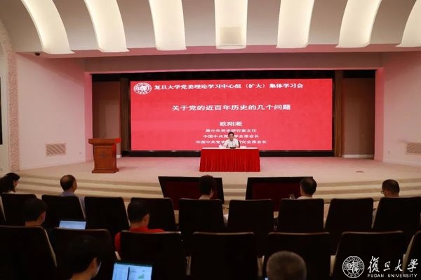 9月15日下午,复旦大学党委理论学习中心组(扩大)围绕“深入学习党史、牢记初心使命”举行“四史”学习教育第三场集体学习。原中共中央党史研究室主任、中央马克思主义理论研究和建设工程咨询委员、全国党建研究会顾问欧阳淞应邀作专题辅导报告。复旦大学党委书记焦扬主持会议并讲话。