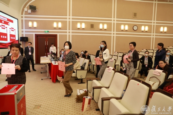 在校歌声中,复旦大学第四次妇女代表大会胜利闭幕。