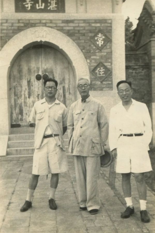 1957年8月26日,谭其骧(左)与顾颉刚(中)、侯仁之同游湛山寺