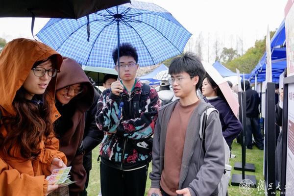 在海报摊位之外,场地外围设有“复芏计划”特色项目介绍区,展示着学校对本科生科研的持续支持。第一届“悟”阶段的高票课题也在现场展出,成为学弟学妹们的参考范本。还有“数院大神”“益创星球”等学生社团的摊位,吸引着往来同学。