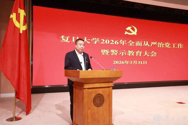 3月31日下午,复旦大学召开2026年全面从严治党工作暨警示教育大会。校党委书记裘新讲话,部署学校全面从严治党年度工作。校长金力主持会议。教育部高校党建工作联络员、上海外国语大学党委原书记姜锋到会指导。校党委副书记、纪委书记、国家监委驻复旦大学监察专员林立涛通报有关情况,布置纪检监察巡视年度重点工作。