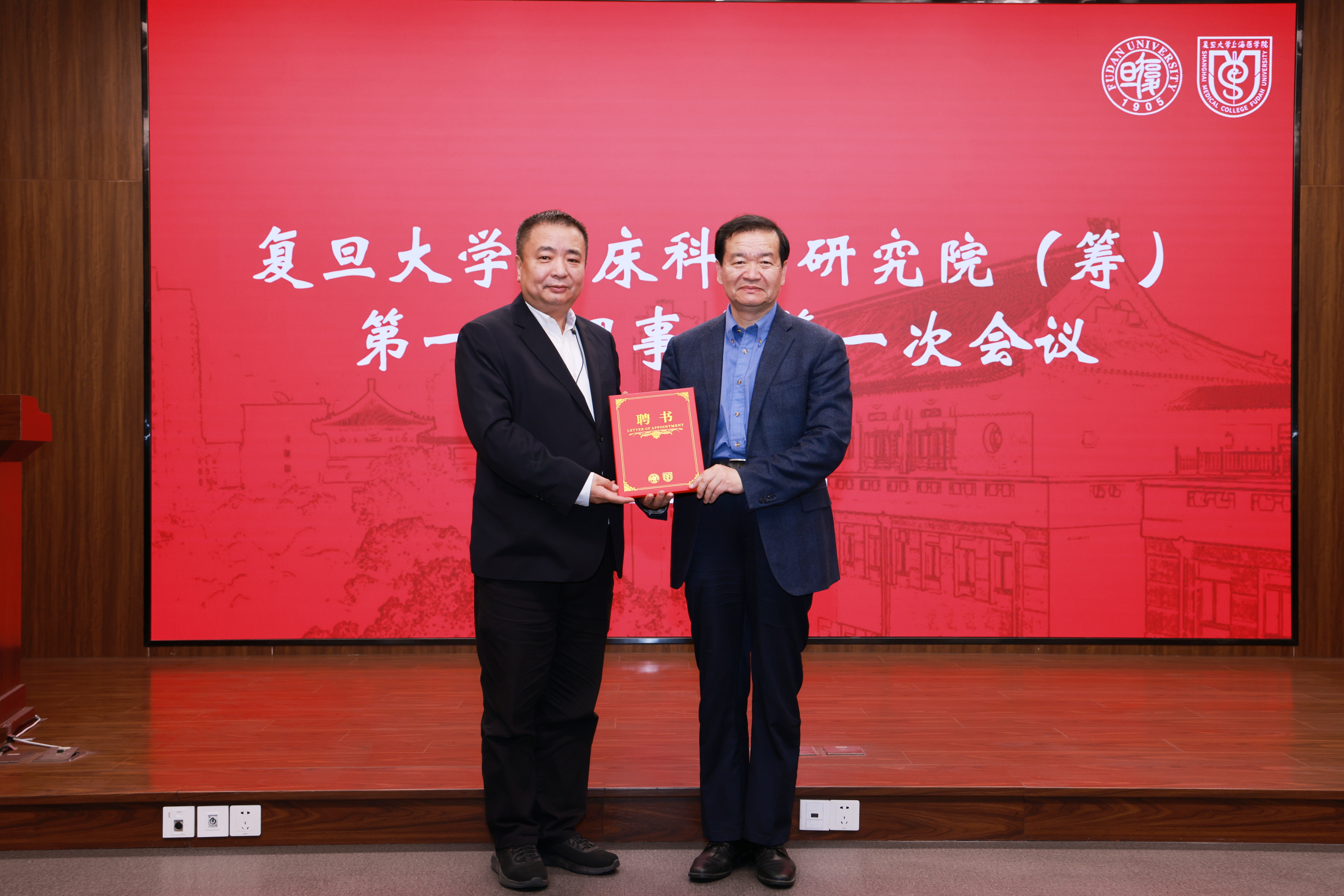 会上,临科院聘任特聘教授张丹担任首席医学官(CMO),金力为其颁发聘书。