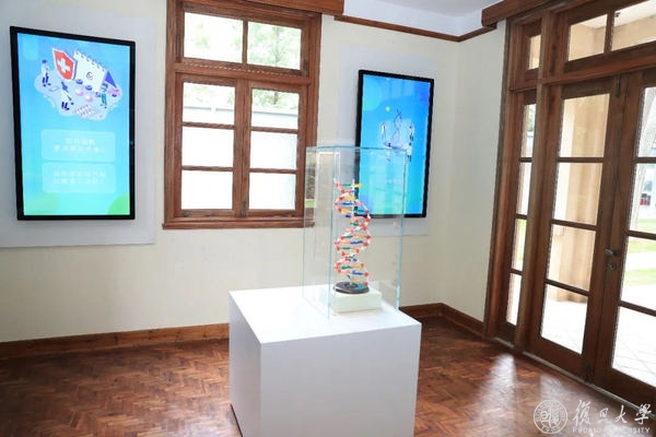 谈家桢(陈建功)旧居展陈以“坚持真理 科学报国”为主题,采用主题展陈为主线、时间先后为辅线的形式展陈,展现谈家桢的学术成就、学科贡献等。值得一提的是,旧居设置互动科普展厅,通过DNA双螺旋模型以及问答式互动屏幕,让观众直观感受基因技术如何造福人类,了解复旦人在生命科学领域的最新科研成果;三颗小行星曾以玖园中居住过的三位大师——苏步青、谈家桢、谷超豪命名,复旦星空展厅以此为设计契机,用L型大屏视频配合灯光、声效,凸显“仰望星空 致敬大师”的主题。