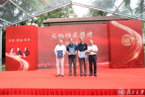 苏步青后人先后捐赠了苏老手稿、院士铭牌等47件,以及苏步青星铜匾、国际命名公报、命名证书等5件。今天的仪式上,大师家属又将一批珍贵的实物档案捐赠给学校。苏步青后人捐赠了苏老写给女儿的237封家书。谈家桢后人捐赠了谈老使用过的书籍、衣物等,特别是旅行箱,见证了谈老多次赴美,为学校筹措科研经费,动员青年学者学成回国的场景。陈建功家属捐赠了陈先生使用过的文具、书籍等,其中两个书橱陪伴着陈先生从复旦到杭州,如今,这两个书橱重又回到当初的小楼。