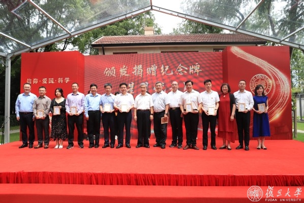 上海市教育发展基金会理事长王荣华、杨浦区委书记谢坚钢出席并致辞,副校长张志勇为捐赠人颁发捐赠纪念牌,复旦大学校友会副会长徐明稚、民盟上海市委副主委丁光宏、张志勇为星星代表颁发捐赠纪念牌,校党委副书记金海燕为苏步青、谈家桢、陈建功家属代表颁发捐赠证书,校党委副书记尹冬梅为志愿讲解服务队授旗。焦扬,王荣华,谢坚钢,徐明稚,丁光宏,上海汇银(集团)有限公司执行董事沃全,复星集团党委书记、高级副总裁李海峰与苏步青、谈家桢、陈建功家属代表共同为玖园揭幕。仪式由校党委副书记许征主持。