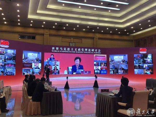 研讨会以“世界马克思主义实践发展和理论创新”为主题,与会代表围绕摆脱贫困、高质量发展、“一带一路”合作等议题进行交流研讨。中联部部长宋涛宣读了习近平总书记的贺信,并在开幕式上作主旨讲话,中联部副部长陈洲主持研讨会开幕式。复旦大学党委书记、“一带一路”智库合作联盟共同理事长焦扬在京出席会议,并在“‘一带一路’合作与人类命运共同体”分议题研讨环节作引导性发言。研讨会在复旦大学设视频分会场。