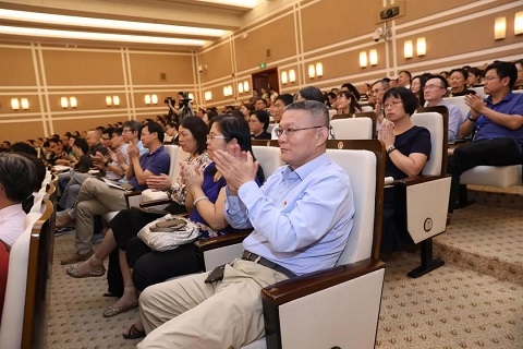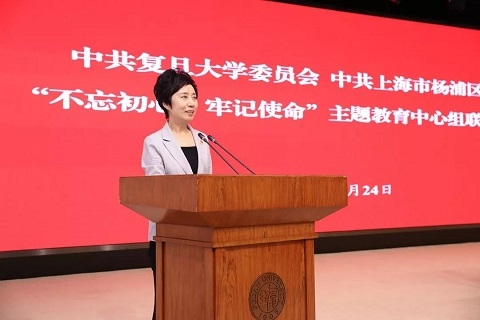 会议由复旦大学党委书记焦扬主持,复旦大学党委副书记、校长许宁生等党政领导、复旦大学上海医学院党政领导、全校中层领导干部、教职工党支部书记,杨浦区委书记李跃旗,区委副书记、区长谢坚钢等杨浦区委、区政府领导参加了学习。