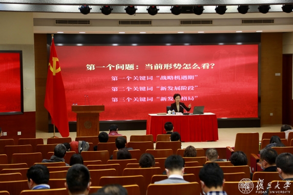 焦扬表示,当前和今后一个时期,国家和学校的发展仍然都处于重要战略机遇期,但机遇和挑战都有新的发展变化。党员干部要坚持辩证唯物的世界观和方法论,坚定理想信念、增强信心斗志、保持头脑清醒,努力把握时与势的变化、危与机的转化、竞与合的衍化;要有不进则退、不兴则亡的使命感紧迫感,带领人民群众奋发向上、迎难而上;要结合学校和本单位实际,引导师生员工观大局、看大势、找机遇、抓机遇,因势而谋、乘势而上。新发展阶段的发展必须坚定不移贯彻新发展理念。推动高质量发展是国家“十四五”发展的主题,也是学校“十四五”规划指导思想的主题。要实现高质量,必须要突出问题导向、增强系统观念、坚持结构增长、推动融合创新、强化制度保障。要构建新发展格局,抓住服务国家主线,抓牢人才培养根本,抓好科技创新关键,抓实改革开放引擎,抓紧安全发展底线。要把复旦在新阶段新征程的方位和使命,放在民族复兴战略全局和世界百年变局中加以考量,放在主动服务和融入新发展格局中予以谋划,这是重要的发展观,也是重要的方法论。
