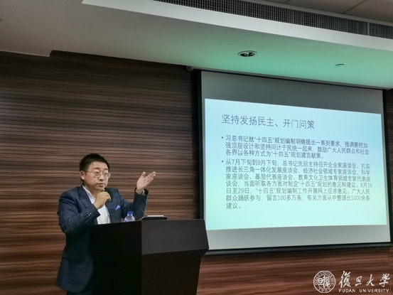 为深入学习贯彻总书记重要讲话和五中全会精神,校党委成立复旦大学党的十九届五中全会精神宣讲团,推动宣讲专家深入基层单位,走进师生群众,在二级单位开展全覆盖宣讲。